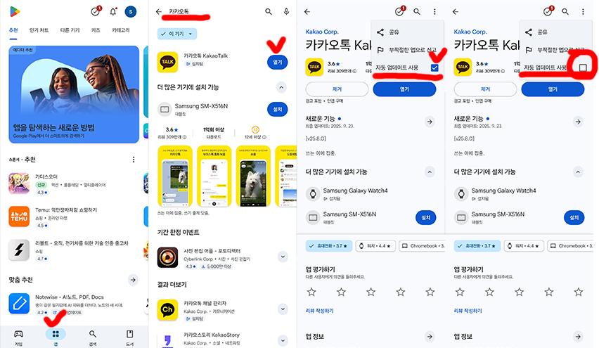 2) 카카오톡만 자동 업데이트 끄기 (추천)