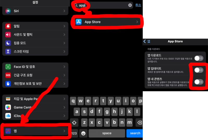 - 설정 앱 → App Store